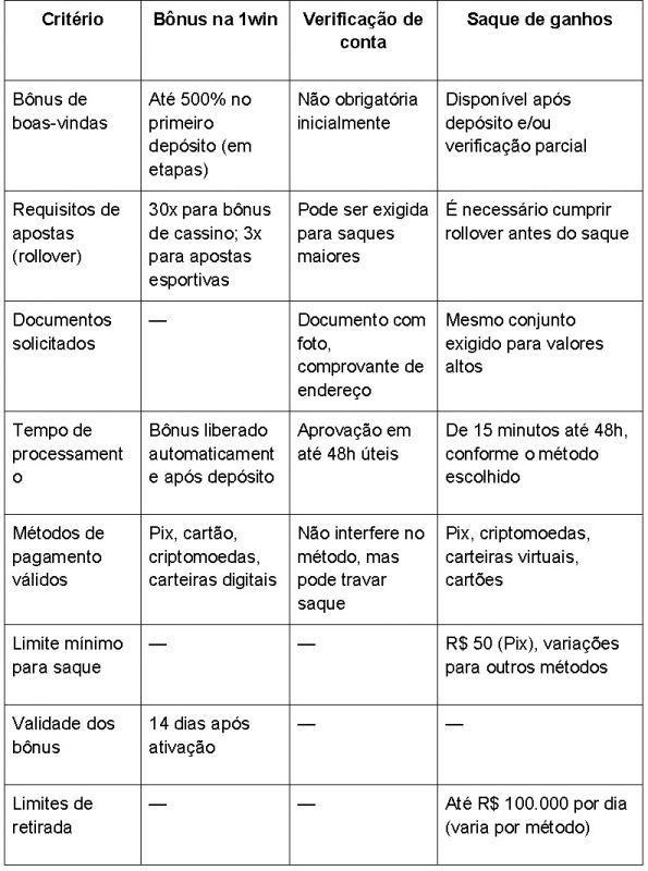 Ao acessar o site oficial da 1win, o usuário encontra promoções tentadoras logo de início, como bônus de boas-vindas e recompensas por recargas. Mas para transformar essas vantagens em dinheiro real, é fundamental compreender os termos envolvidos, desde os requisitos de apostas (rollover), até os limites mínimos e prazos para retirada. Abaixo, reunimos as principais informações em formato comparativo, para oferecer uma visão clara e objetiva da política da 1win nesses três aspectos fundamentais.