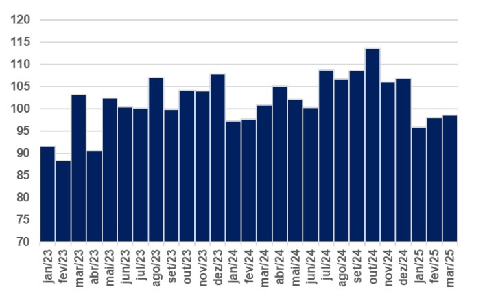 O Índice Omie de Desempenho Econômico das PMEs (IODE-PMEs) aponta recuo no faturamento médio das pequenas e médias empresas (PMEs) brasileiras em março de 2025 (-2,4% YoY), após estabilidade (+0,3% YoY) em fevereiro deste ano. Com isso, o primeiro trimestre encerrou com queda de 1,2% na comparação com o mesmo período do ano passado, resultado mais fraco do mercado de PMEs desde o último trimestre de 2021.