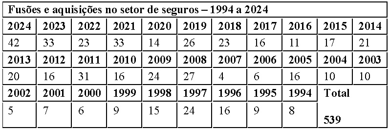 O setor de seguros apresentou em 2024 o maior número de transações dos últimos 30 anos, segundo o relatório da KPMG. De janeiro a dezembro, foram efetuadas 42 operações. Esse número é 27% maior em comparação com o mesmo intervalo de 2023, quando foram realizadas 33 fusões e aquisições. Os dados constam em estudo realizado trimestralmente pela KPMG com a participação de 43 áreas da economia brasileira.
