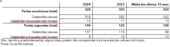 Perdas econômicas totais e perdas seguradas em 2024 e 2023