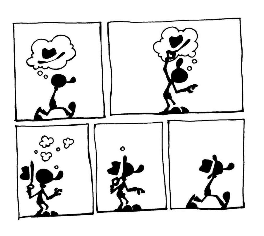 Cada tirinha desenhada cativa o leitor por sua narrativa e forma. A identificação do público com o personagem é imediata, por meio da plasticidade provocante do trabalho do cartunista.