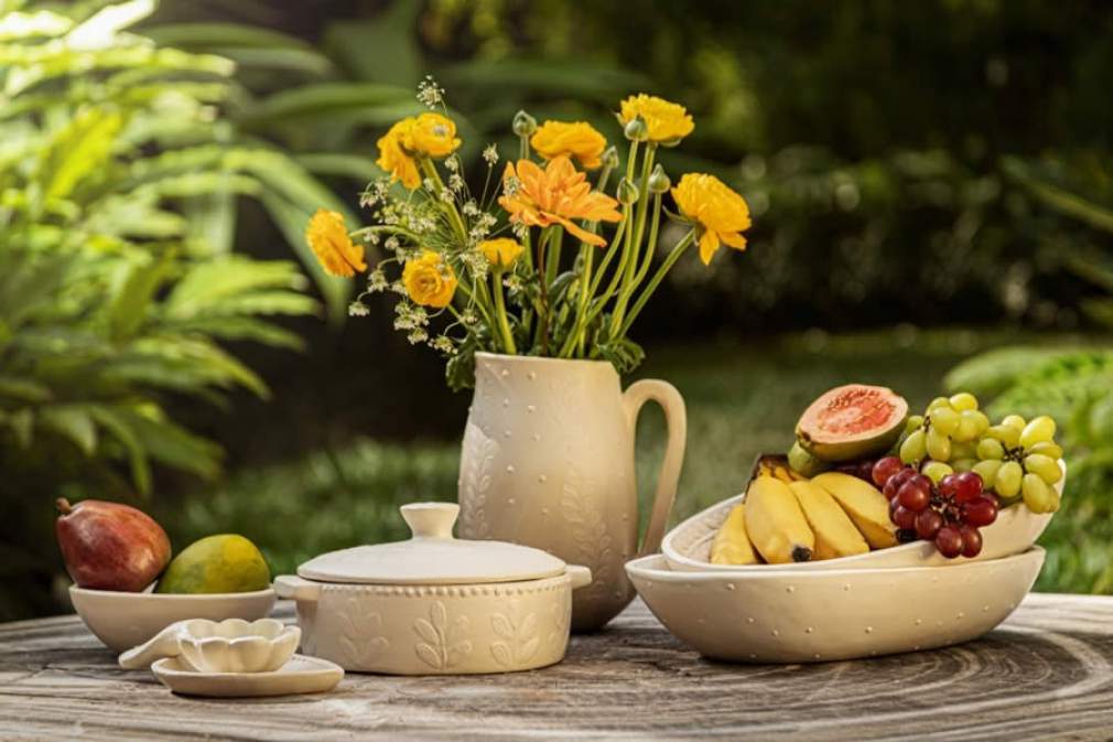 Junto com um coletivo de artesãs do Vale do Jequitinhonha (MG), a marca desenvolveu uma linha exclusiva de itens para decorar e servir