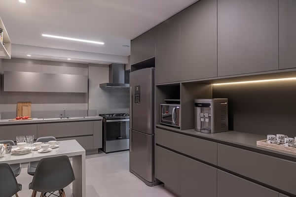 Apesar de ser um tom mais escuro, na cozinha o cinza é uma cor que evidencia a sujeira em uma escala menor, em detrimento dos tradicionais branco e bege, que demostram qualquer traço. “Devido sua cor semelhante ao pó, eventuais manchas ou sujeiras demoram mais serem percebidas”, finaliza Renan.