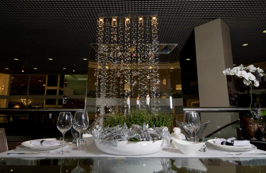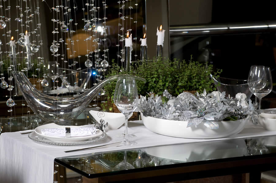 Mesa decorada de Cristiane Schiavoni. Para esse ano, menos é mais: uma decoração comedida evita que os convidados queiram tocá-la.