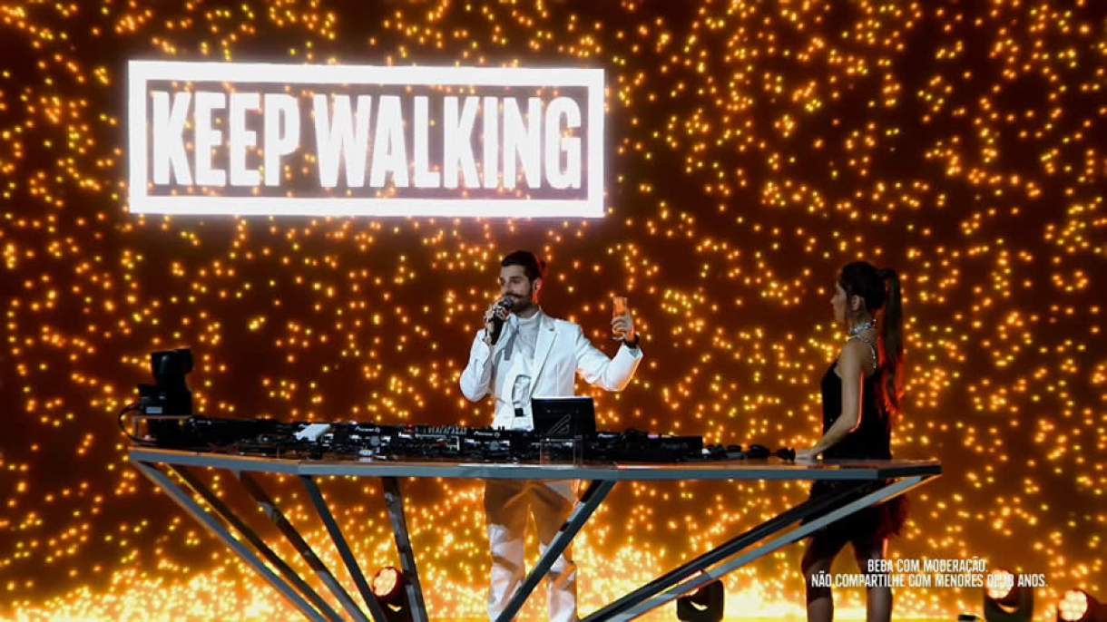“Eu quero fazer um brinde às novas possibilidades que podemos encontrar, criando outras perspectivas com otimismo que nunca podemos perder. E aproveito esse momento para brindar a todos. E este não é um brinde qualquer, eu convido vocês todos a brindar marcando Johnnie Walker no Twitter. Se batermos 5 mil brindes, a marca vai doar 250 mil reais para o Natal Sem Fome”, comunicou o DJ, emocionando a audiência.