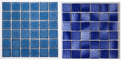 Com texturas compostas por pequenos relevos, as pastilhas Pitinga SG13136 e Ávila B-11833 (5 x 5 cm) proporcionam a sensação de movimento do mar | Fotos: Divulgação Cerâmica Atlas