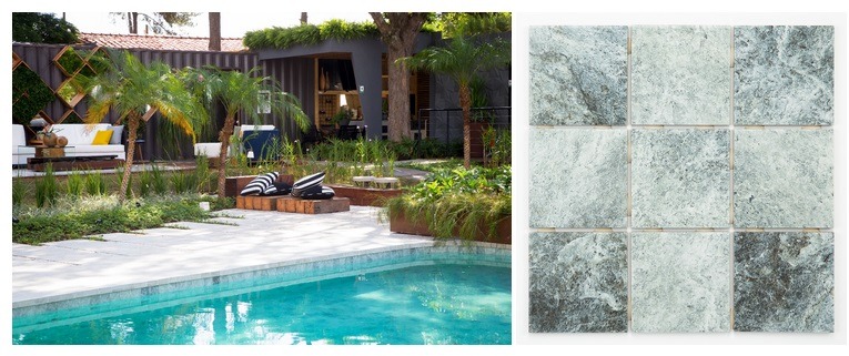 Projetadas para garantir segurança e diminuir a incidência de acidentes por queda, as pastilhas de porcelana antiderrapantes, no formato 5 x 5 cm, são as mais indicadas para piscinas, decks e áreas suscetíveis e escorregões| Fotos: Divulgação Cerâmica Atlas