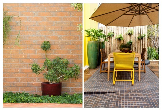Inspirados nos tijolos, as referências Massa OMD14984 (7x26 cm) e Terraço M7393 (5x5 cm) levam as varandas de casas e prédios o clima rústico de fazendas e casas no campo | Fotos: Divulgação Cerâmica Atlas