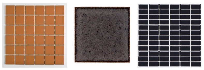 Líder no segmento de pastilhas de porcelana, a Cerâmica Atlas conta com opções capazes de dar um visual único para churrasqueiras e áreas gourmet. Acima, os modelos: Cromo B2153 (5x5 cm), Livorno REC12313 (10x10 cm) e Preto M4337 (2,5x5) | Fotos: Divulgação Cerâmica Atlas