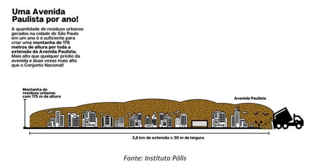 A quantidade de resíduos sólidos gerada anualmente na cidade de São Paulo seria suficiente para cobrir toda a extensão da Avenida Paulista com uma montanha de lixo de 175 metros, mais alta do que qualquer um dos edifícios da via. Apenas em 2020, a cidade produziu 5,7 bilhões de quilos de resíduos sólidos, sendo que 98% foram enviados para aterros sanitários, ou seja, não são reciclados. O despejo desses resíduos nos aterros, de acordo com a Campanha São Paulo Composta, Cultiva, liderada pelo Instituto Pólis, representa a terceira maior fonte de emissões de gases do efeito estufa na capital. O tema ganha ainda mais relevância em 17/05, data que marca o Dia Internacional da Reciclagem.