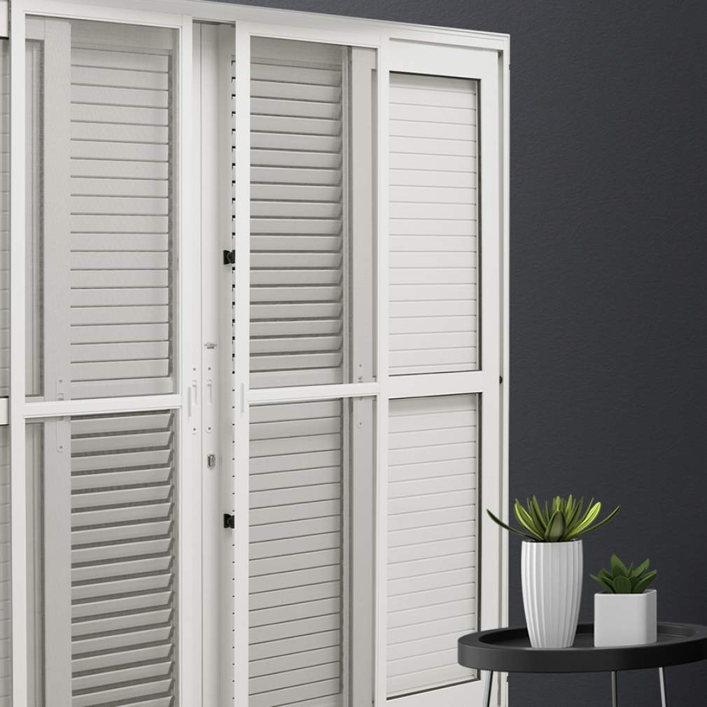 - Tela Mosquiteira de Correr para a linha Aluminium – nesta versão a tela corre, permitindo abertura e fechamento. Está disponível para os modelos de janelas Venezianas Multiflex e Portas Balcão de Correr Multiflex da linha Aluminium.