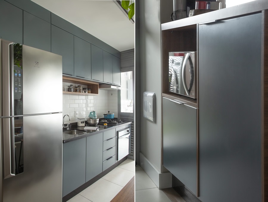 A marcenaria planejada foi a aposta de Bianca Tedesco e Viviane Sakumoto para aproveitar cada cantinho dessa cozinha compacta. Foto: Luís Gomes