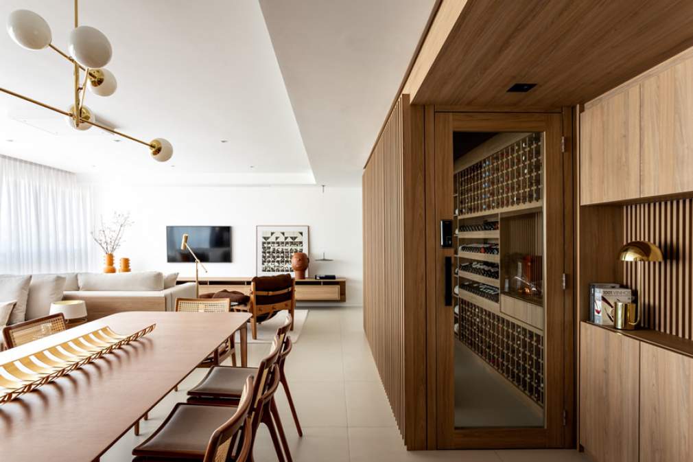 O principal pedido dos moradores para os arquitetos Matheus Marques e Ricardo Gonçalves, sócios do Hiperstudio, foi uma ter uma adega do tipo walk in.