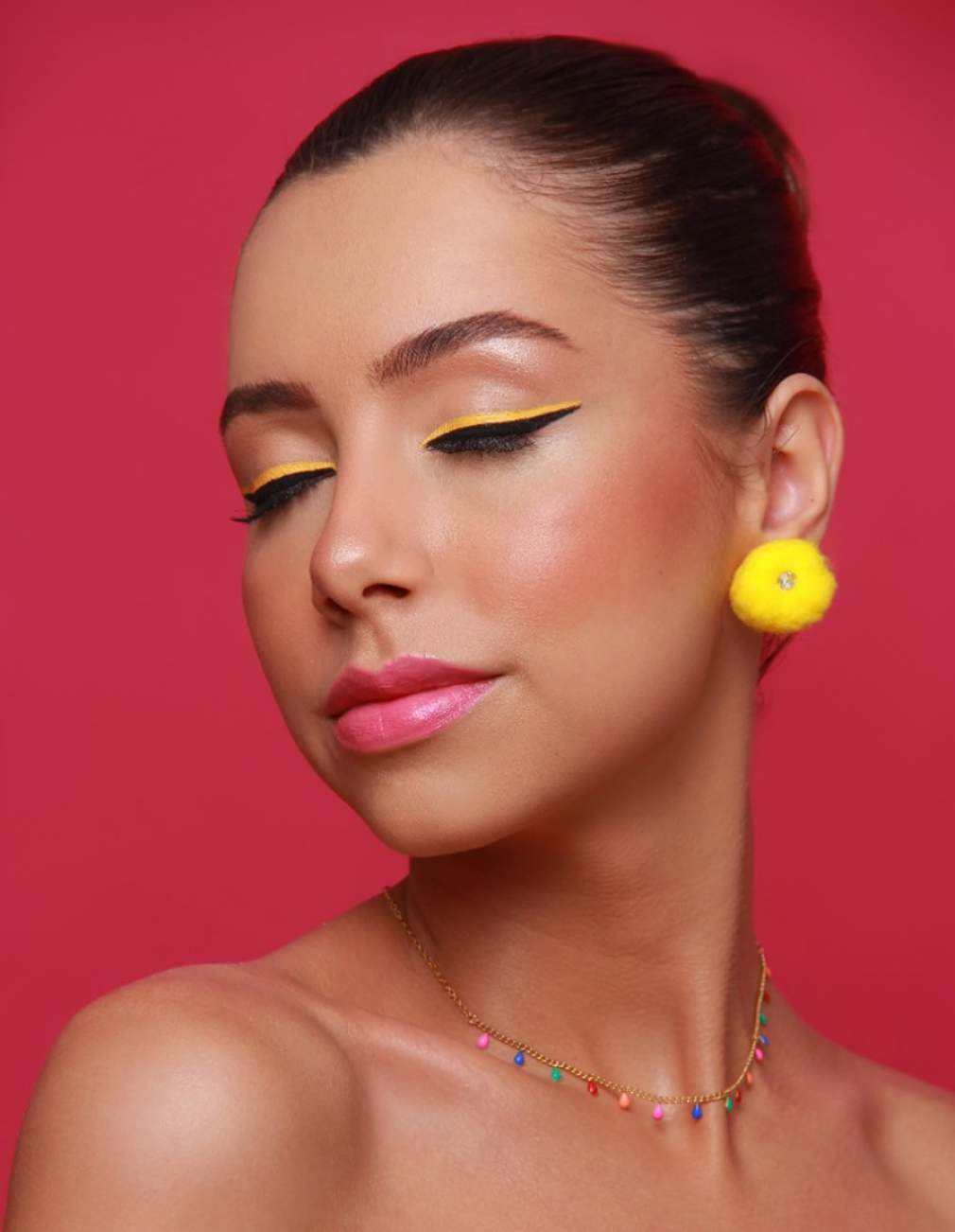 - Aplique o delineador amarelo rente ao preto, já seco. Tenha bastante cuidado e precisão na mão.