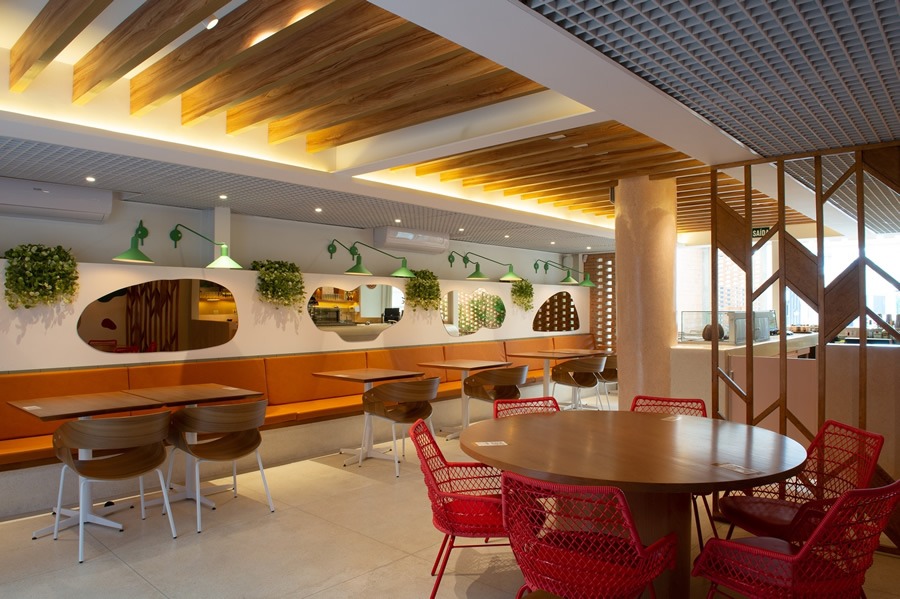 Utilizar plantas na decoração é sempre bem vindo – como Claudia Novaes fez no projeto do restaurante Nope e da padaria Padang. Fotos: Marcelo Magnani