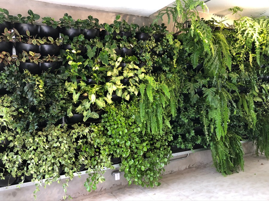 Jardim vertical Ecotelhado na entrada de residência