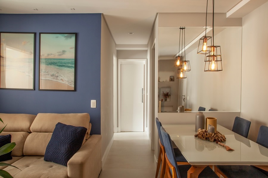 Espelho: Seu uso em ambientes com metragens limitadas já é um bom e velho conhecido no décor de interiores. “Uma dica valiosa aqui: se a intenção for instalar em algum ponto que venha a refletir a mesa de jantar, sempre vale certificar-se que a altura será pareada com a mesa ou dos assentos da cadeira. Esse cuidado se justifica pois, se o espelho seguir até o chão, refletirá os pés da cadeira, provocando uma poluição visual e o efeito contrário ao esperado”, comenta Nathalia;