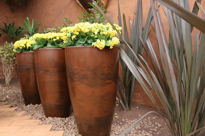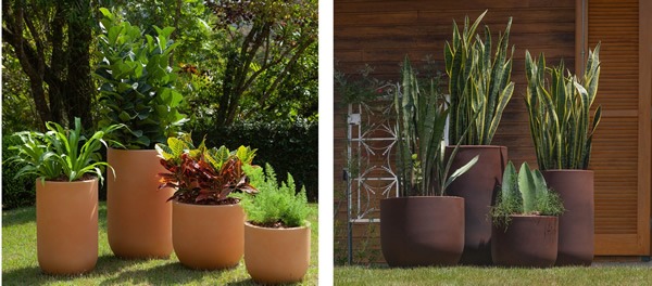 Vasos em tons terrosos da coleção Deco, da Vasart, em parceria com a Folha Paisagismo| Fotos de Luis Gomes