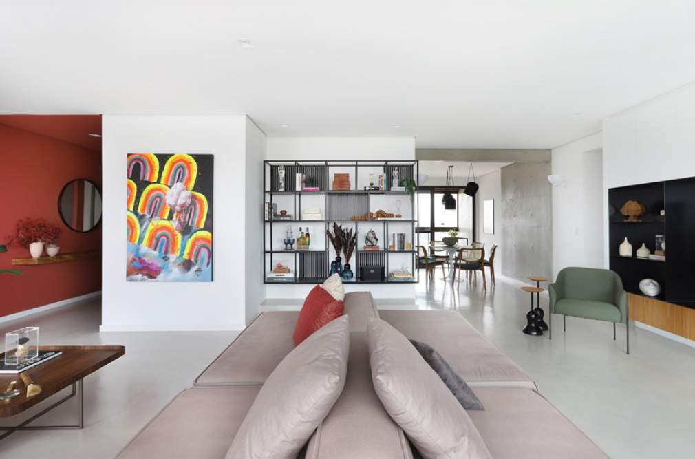 Estilo industrial e pinceladas de cor valorizam apê em São Paulo