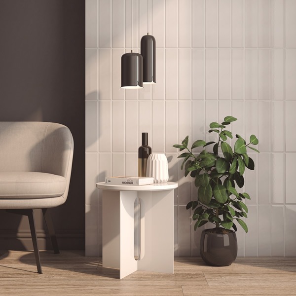 Segundo a Roca Brasil Cerámica, a paginação vertical também está em alta. Como o nome já indica, nesse tipo de paginação as peças devem estar alinhadas verticalmente - em revestimentos retangulares, isso significa que a dimensão maior da peça estará disposta verticalmente. "Paginações verticais trazem sensação de altura, marcando o pé-direito dos ambientes", comenta Christie. Por outro lado, paginações horizontais, que organizam as peças de acordo com o eixo horizontal, podem trazer a sensação de amplitude.