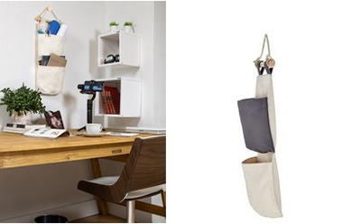 Organizadores verticais em lona com bolso e corda para pendurar