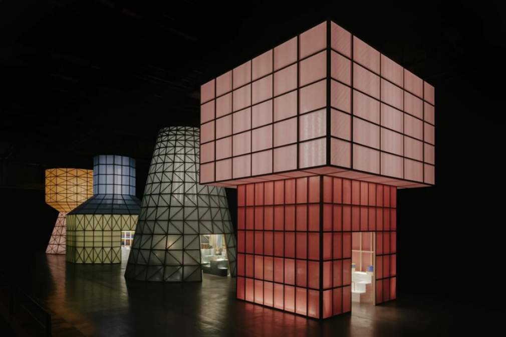 A Hermès, uma das mais desejadas do mundo quando pensamos em luxo e exclusividade, também pegou carona no design de interiores e chamou atenção em sua instalação cheia de geometrias. No grande espaço de La Pelota, mergulhada na escuridão, encontravam-se quatro tipos de luminárias gigantes, cada uma emitindo uma tonalidade diferente de luz. Conhecida por uma variedade de itens de alta costura, desta vez a marca aposta em decoração, cheia de referências.