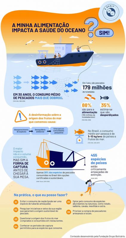 Portanto, é fato que a forma como cada um de nós consome pescados impacta na saúde do oceano. Precisamos de consumidores cada vez mais conscientes e exigentes, além de gestão e práticas pesqueiras sustentáveis, para evitar que espécies marinhas desapareçam e não haja escassez de recursos vindos do mar.