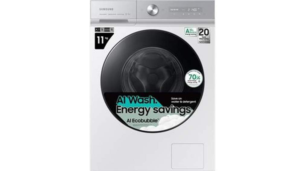 Para as máquinas de lavar roupa nº 1 da Samsung com classificação de eficiência energética[2], o SmartThings Energy com AI Energy Mode otimiza os ciclos de lavagem[3] com tecnologias como o AI Ecobubble™, que reduz a energia em até 70%[4] lavando roupas com água fria e ainda oferecendo uma limpeza poderosa.