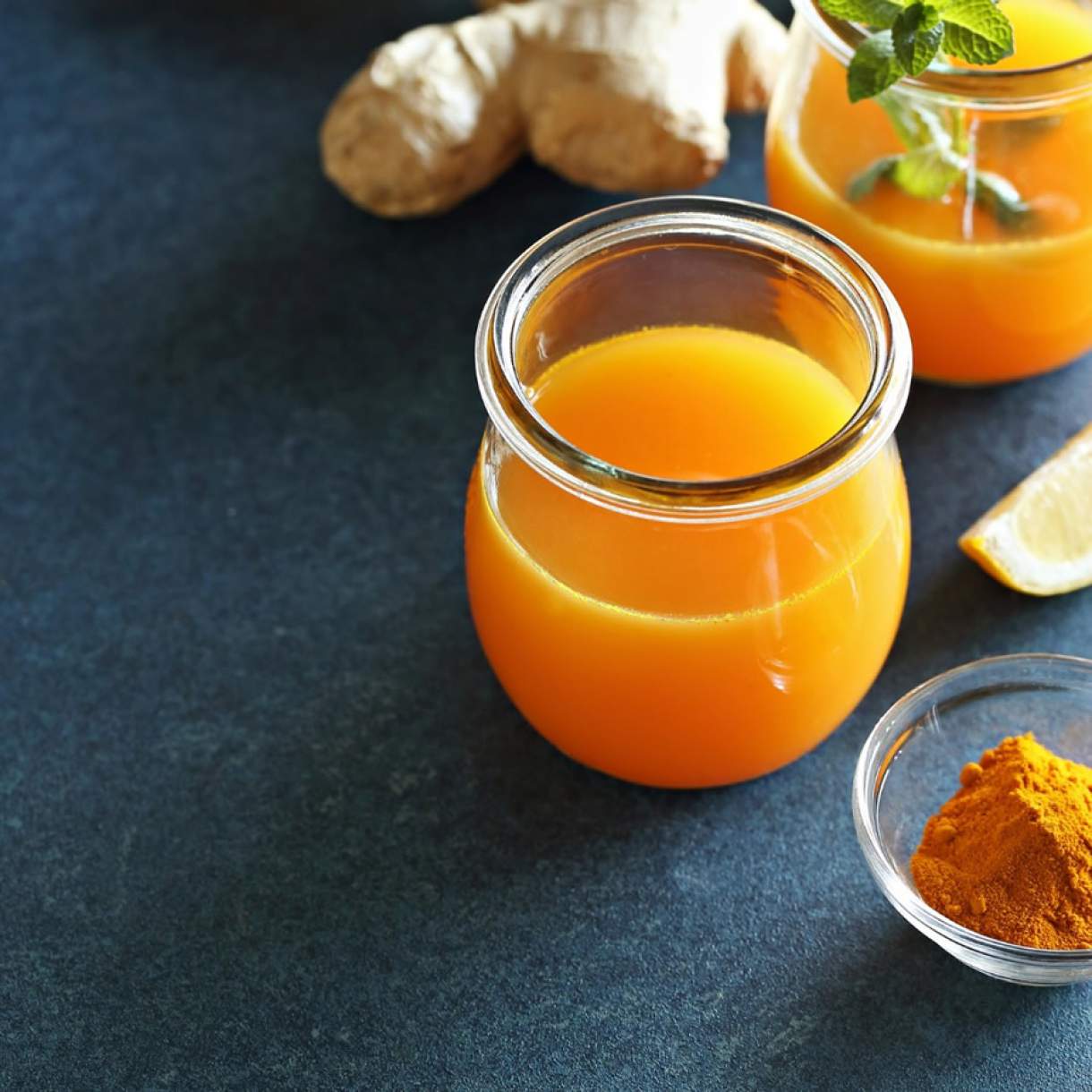 Um shot que pode potencializar o organismo nas primeiras horas da manhã é o Bomb 01 que traz todo o poder da cúrcuma, um anti-inflamatório e antioxidante natural. A cúrcuma também é uma excelente fonte de ferro, manganês e uma boa fonte de vitamina B6, fibras e potássio. Nesse Bomb ela se soma ao limão e ao gengibre, dois ingredientes que fortalecem a imunidade e alcaliniza o sangue.