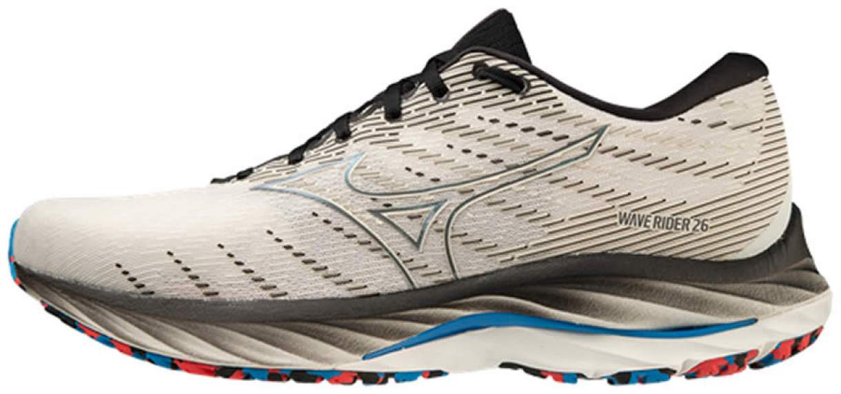 O Wave Rider 26 possui uma nova estrutura de entressola, com muito mais amortecimento, estabilidade e retorno de energia, devido a utilização das tecnologias Mizuno Enerzy e Mizuno Wave em formato de placa de PEBAX biodegradável. Seu cabedal é feito em “one piece” de Jaquard Mesh, o que proporciona maior respirabilidade e conforto. O modelo conta também com as tecnologias X10, um composto de borracha com carbono, que oferece maior durabilidade e aderência durante toda sua corrida.