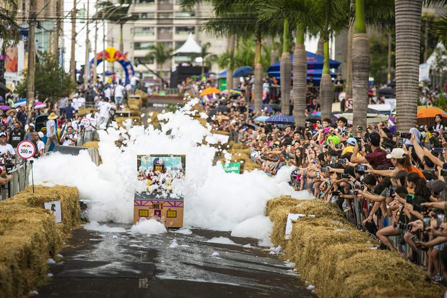 No melhor estilo ‘Faça chuva, faça sol’, mais de 10 mil pessoas lotaram a movimentada Av. Wladimir Meirelles Ferreira, em Ribeirão Preto (SP), para acompanhar um trânsito diferente neste domingo (9). Composto por dinossauros, comidas ambulantes e pontos icônicos do Brasil, o Red Bull Ladeira Abaixo, corrida maluca de carros sem motor, retornou ao país após três anos e consagrou a equipe mineira "Pão de Queijo Recheado" como a grande campeã desta edição.