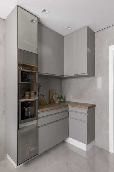 Em uma das cozinhas realizadas por Gabriela, havia o desejo de contar com uma mini copa para as refeições cotidianas dos moradores. Entretanto, o espaço era insuficiente para inserir uma mesa e, por isso, a versatilidade entrou em cena com embutir, na própria estrutura da marcenaria, a mesa que pode ser acessada para os momentos de café da manhã e almoço. “Ao embutir essa base, não comprometemos a circulação e proporcionamos a oportunidade dessa família estarem juntos todos os dias”, conta.