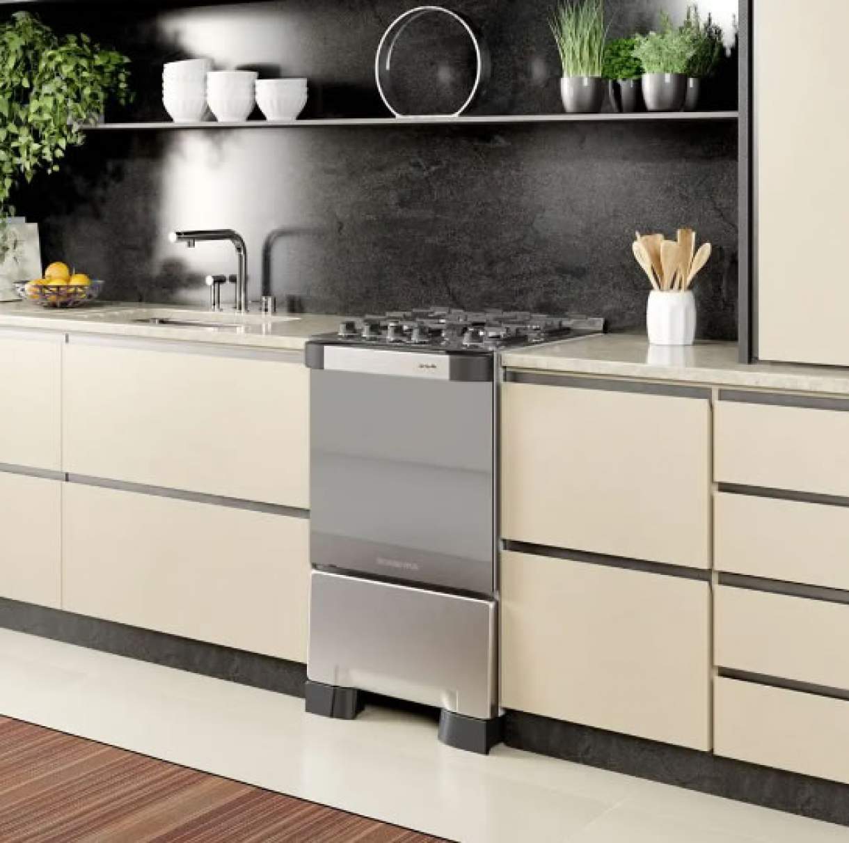Trazendo estilo e alegria para a cozinha, o Fogão Mueller 5 Bocas Piacere mesa Inox relembra a importância em ter cuidado com produtos abrasivos e impróprios para o uso em inox. Eles podem danificar permanentemente o seu fogão! | Foto: Divulgação Mueller