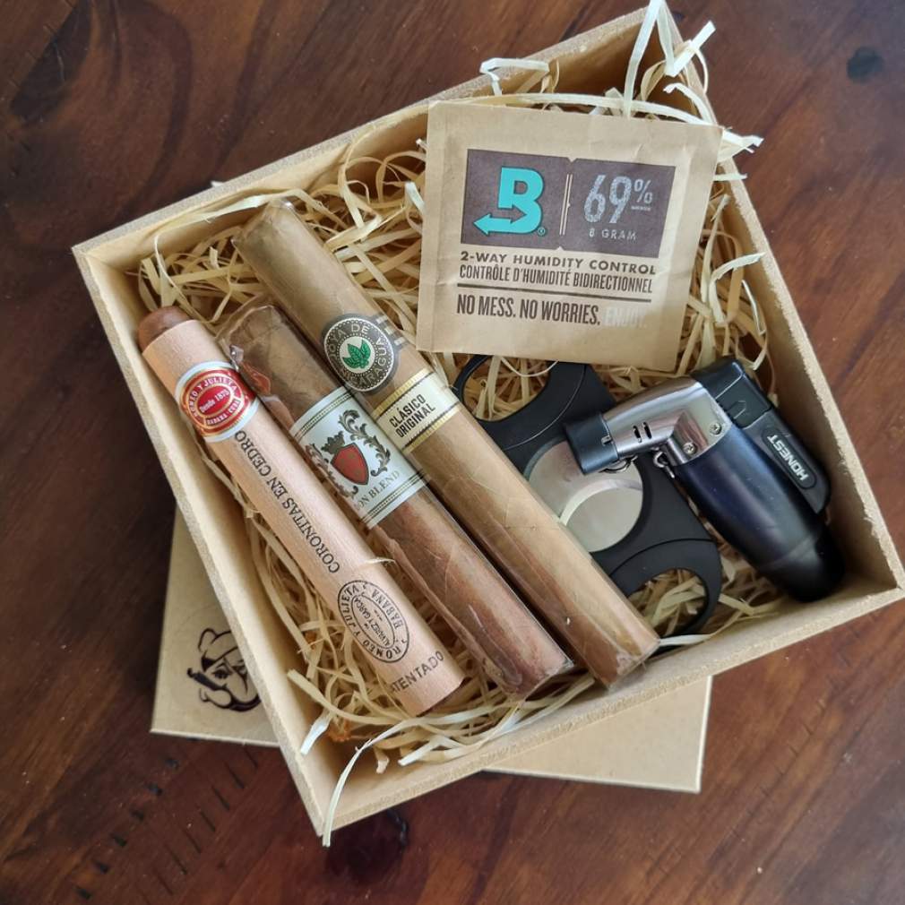 O presente ideal para quem quer iniciar nesse universo são três charutos de fortaleza suave, além dos acessórios básicos para iniciar que são: um cortador, um maçarico e um boveda para guardar os charutos em casa e garantir a sua qualidade. "No nosso instagram a pessoa encontra diversas dicas sobre como cortar, acender e também guardar os seus charutos em casa", diz.