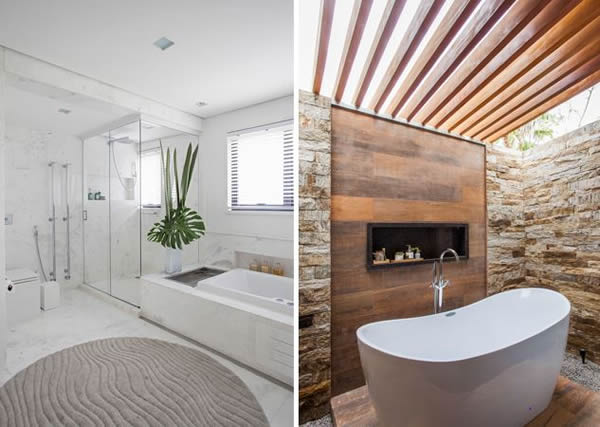 Nas versões embutida e freestanding, a banheira é uma opção para desacelerar em meio à rotina e amenizar os efeitos da temperatura nos dias de verão | Projetos: Korman Arquitetos | Fotos: Gui Morelli e Luis Gomes