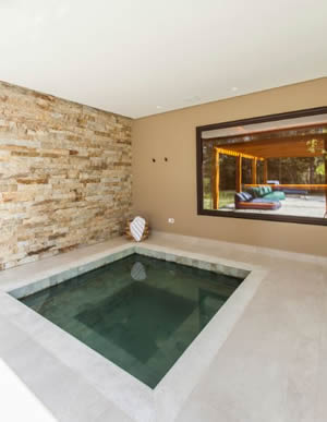 Numa área coberta e protegida de ventos, o spa térmico atende a quem adora dar um mergulho mesmo no inverno. Além disso, o sistema de aquecimento soma pontos no valor do imóvel | Projeto: Korman Arquitetos | Foto: Eduardo Pozella