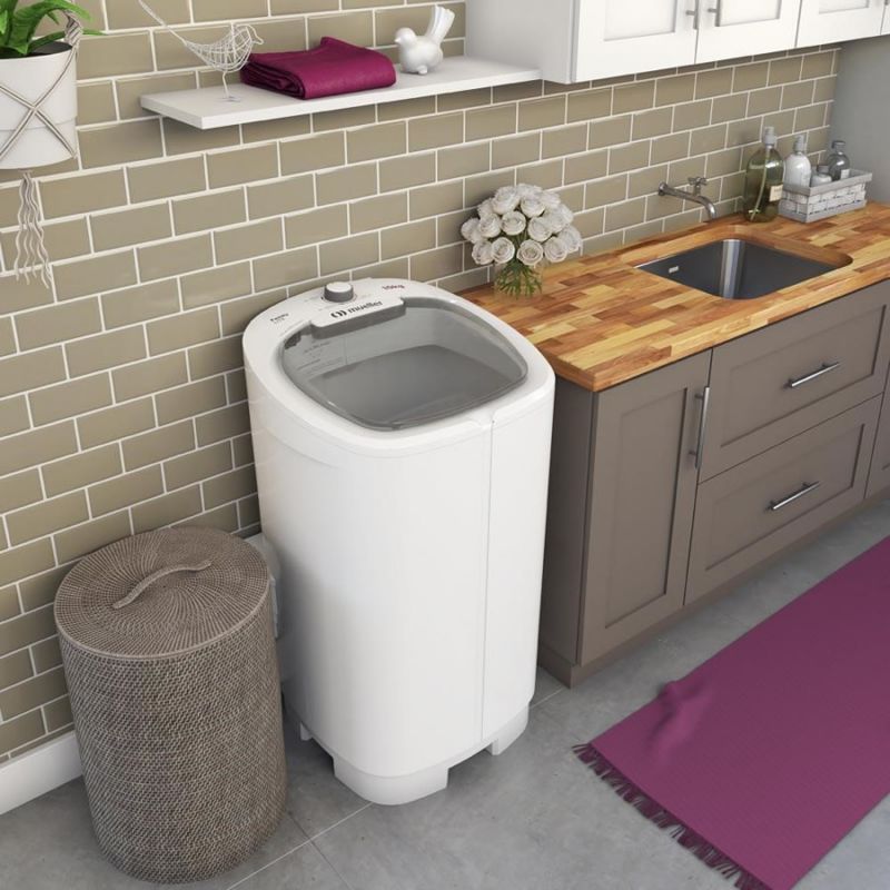 Com a missão de tornar o dia a dia mais prático, o Tanquinho Family Lite, da Mueller, possui capacidade para até 10kg de roupa molhada. Um dos grandes sucessos de venda da marca, é equipado com filtro de fiapos, dispenser para sabão e amaciante e possui quatro programas de lavagem. | Foto: Divulgação Mueller