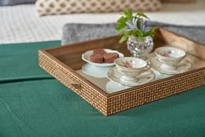Utilizada para servir um delicioso café da manhã na cama, a bandeja decorativa também é uma ótima opção para quem busca investir em itens versáteis e que permitam diversas funções. As bandejas decorativas também podem ser dispostas sobre mesas de centro, laterais, buffets e aparadores, quando a intenção é usá-las para organizar o home bar. Mas é claro que a versatilidade da peça é praticamente infinita e pode assumir outras funções, como dispor itens de banheiro, cozinha, quarto e home office. Por isso, escolha bandejas com um design elegante e neutro.