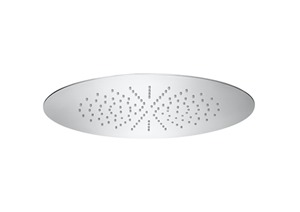 Já imaginou experimentar um delicioso efeito de chuva dentro do banheiro? Isso é possível com a linha Rainsense. Instalado no teto do banheiro, o modelo redondo possui dimensões de 0,38 x 0,38m* | Foto: Divulgação Roca