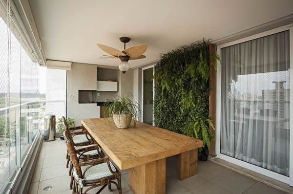 Para trazer frescor para a varanda gourmet desse projeto, Ieda e Carina Korman se valeram do jardim vertical de plantas naturais | Projeto de Korman Arquitetos | Foto: Gui Morelli