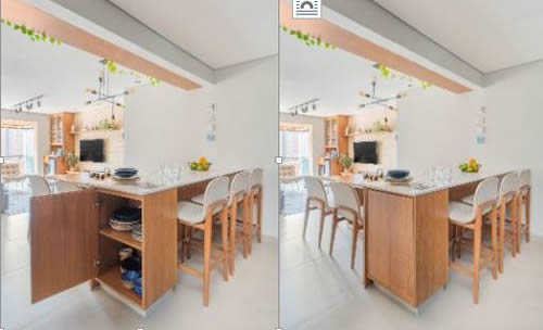 Além de a sua rotina, sem grandes desvios, sabendo que a marcenaria está resguardada, o projeto de cozinha e área gourmet combina funcionalidade com beleza e outros aspectos do décor: