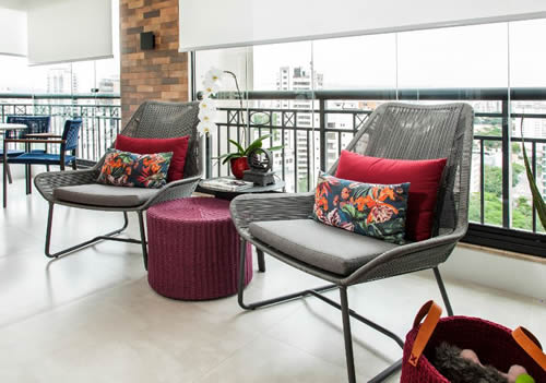 Versátil para tarde de cafés ou jogos de cartas, a mesa completa a mobília da varanda | Projeto de Gigi Gorenstein | Foto: Eduardo Pozella