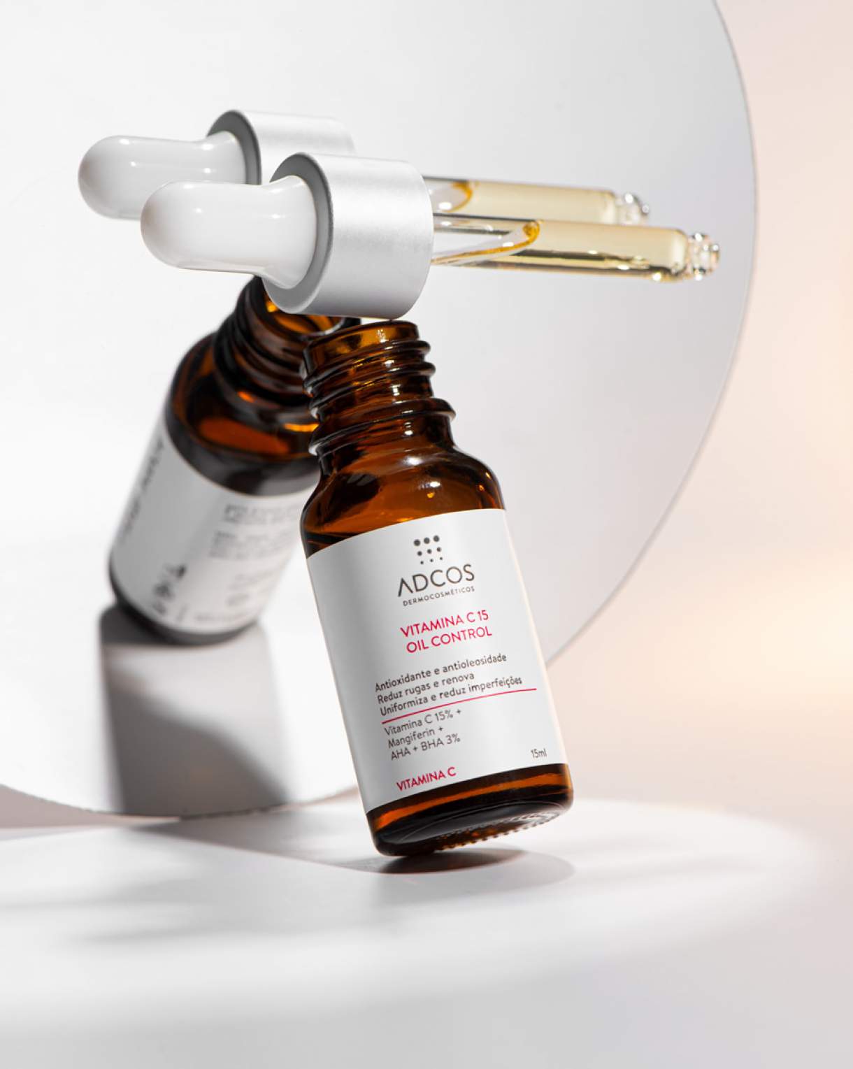O produto, que complementa a linha de vitamina C ADCOS, foi especialmente desenvolvido para atender as necessidades da pele oleosa por reduzir brilho, cravos e poros dilatados, prevenir a acne e suavizar cicatrizes. O diferencial da Vitamina C 15 Oil Control, é a presença do fitoativo Mangiferin, ativo 100% natural extraído das folhas da mangueira africana, que além de reduzir a oleosidade e controlar a atividade da bactéria Cutibacterium acnes, protege a microflora da pele, melhorando barreira cutânea e a qualidade da pele. Desta forma, o ativo trata todos os sinais de pele oleosa prevenindo também a acne.