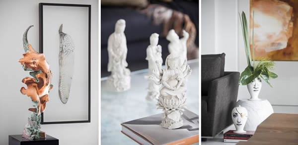 Na escolha de um décor mais artístico, são várias as referências como pinturas, gravuras, fotografias e esculturas. Cada uma dessas possui um artista, estilo e alusões únicas que podem revelar até mais do que se espera do morador, e que com certeza, trarão cor, textura, estilo e estrutura. Quando bem-posicionadas, podem se tornar o ponto de destaque no local ou ser um complemento charmoso no décor. “Importante ter em mente, na hora de selecionar o item, o tamanho e o formato do espaço disponível, pois grandes peças de arte podem saturar um espaço pequeno e peças menores ficam invisíveis em áreas mais extensas”, explica Carina.
