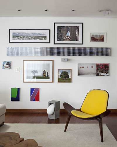 · Salas e livings: Criatividade sem medidas! É possível misturar todos os tipos de obras e criar uma exposição particular ou um gallery wall com fotografias, pinturas em óleo e acrílico, artes abstratas e elementos naturais;