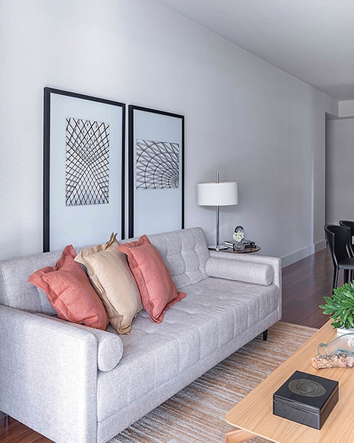 Neste living realizado pela arquiteta Carina Dal Fabbro, as almofadas com cores da paleta candy color complementam o estilo contemporâneo do ambiente | Foto: Rafael Renzo