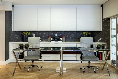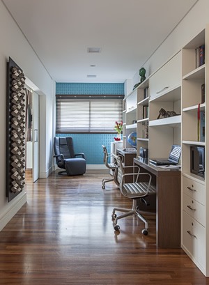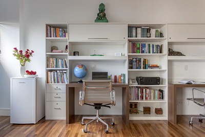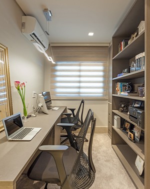 Em um passado não tão distante, o casal se despedia logo cedinho, antes de cada um iniciar o deslocamento para o seu local de trabalho, retornando só à noite. Mas para muitos a realidade não é mais essa: depois de tomar o café da manhã juntos, seguem dividindo o mesmo espaço para exercer as atividades profissionais. E necessariamente precisa que estejam separados, cada um em um canto da casa? “A resposta é não. Mesmo em funções diferentes, eu acredito que o casal pode compartilhar o mesmo home office e, para isso, a estrutura é importante para tornar essa convivência prazerosa e muito saudável”, afirma a arquiteta Cristiane Schiavoni, que comanda o escritório que leva seu nome.