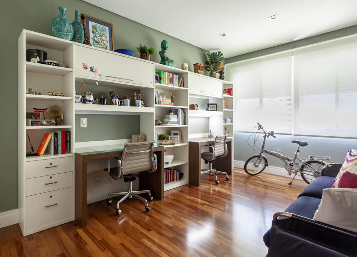 De acordo com a especialista, a concepção de dois espaços não é uma regra. “Muitas vezes o imóvel nem tem área para isso”, argumenta. Portanto, é possível sim ter um home office duplo, sem interferir na individualidade e nas especificidades que cada profissão requer. Experiente, acompanhe as dicas compartilhadas por ela.