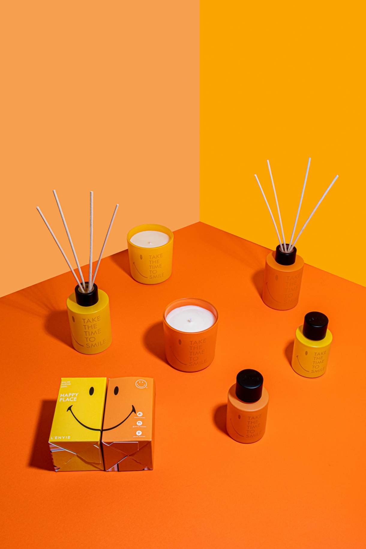 Para traduzir tudo que a Smiley representa, a neurociência foi um grande aliado da perfumista da LENVIE, Fanny Grau, que desenvolveu as fragrâncias: Happy Place e Energy Place. Ambas contam com velas, difusores e Eau de parfum.