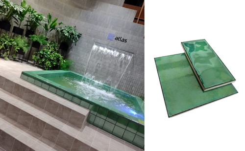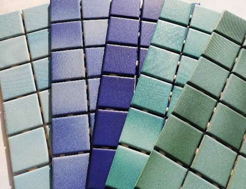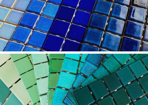 Diversas colorações de pastilhas em tons de azul e verde, os preferidos para áreas de piscinas | Divulgação Atlas